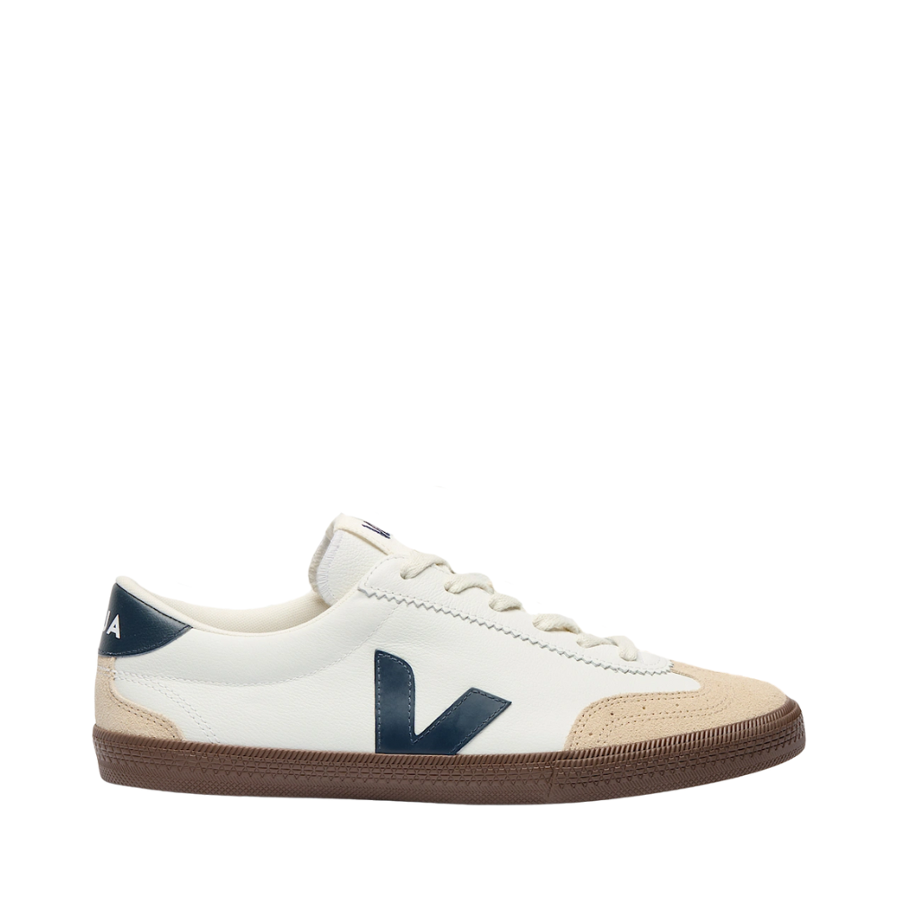 Inspired by classic 1970s Brazilian volleyball shoes, the Veja Volley revives the brand's original 2005 design with modern sustainability. Featuring a soft, organic traced leather upper and suede panels, these shoes combine comfort with eco-conscious materials. The insole blends Amazonian rubber, bio-sourced EVA, recycled components, and organic cotton for natural cushioning, while the durable outsole mixes Amazonian rubber and recycled rubber for lasting wear. Fully lined with recycled polyester and finished with organic cotton laces, this model is proudly made in Brazil, blending heritage style with responsible craftsmanship.